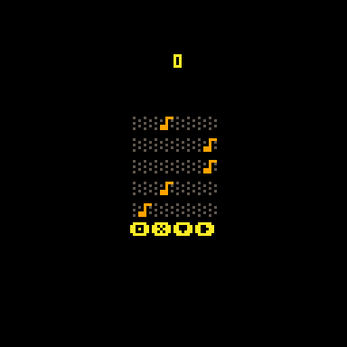 The game board shows the next 5 notes you need to play, the note at the bottom of the grid is the one you need to play next and its sitting in its corresponding lane to one of the following keys Z X DOWN or RIGHT (the glyphs should illustrate this) this was in an attempt to have keyboard input sit on what should hopefully feel like natural left and right side of the playing board.
